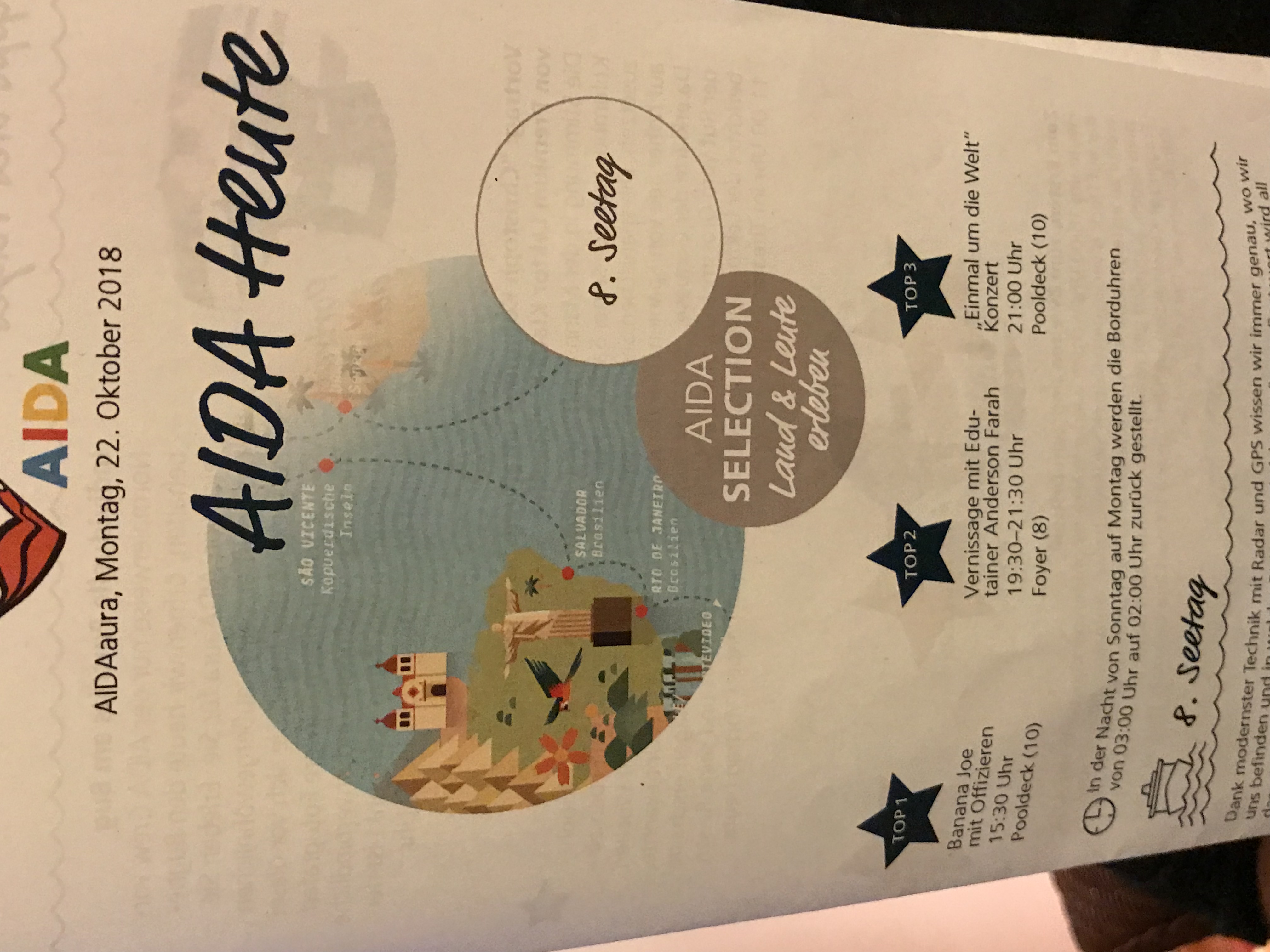 Jeden Abend gibt es ein neues Infoblatt für den nächsten Tag.
