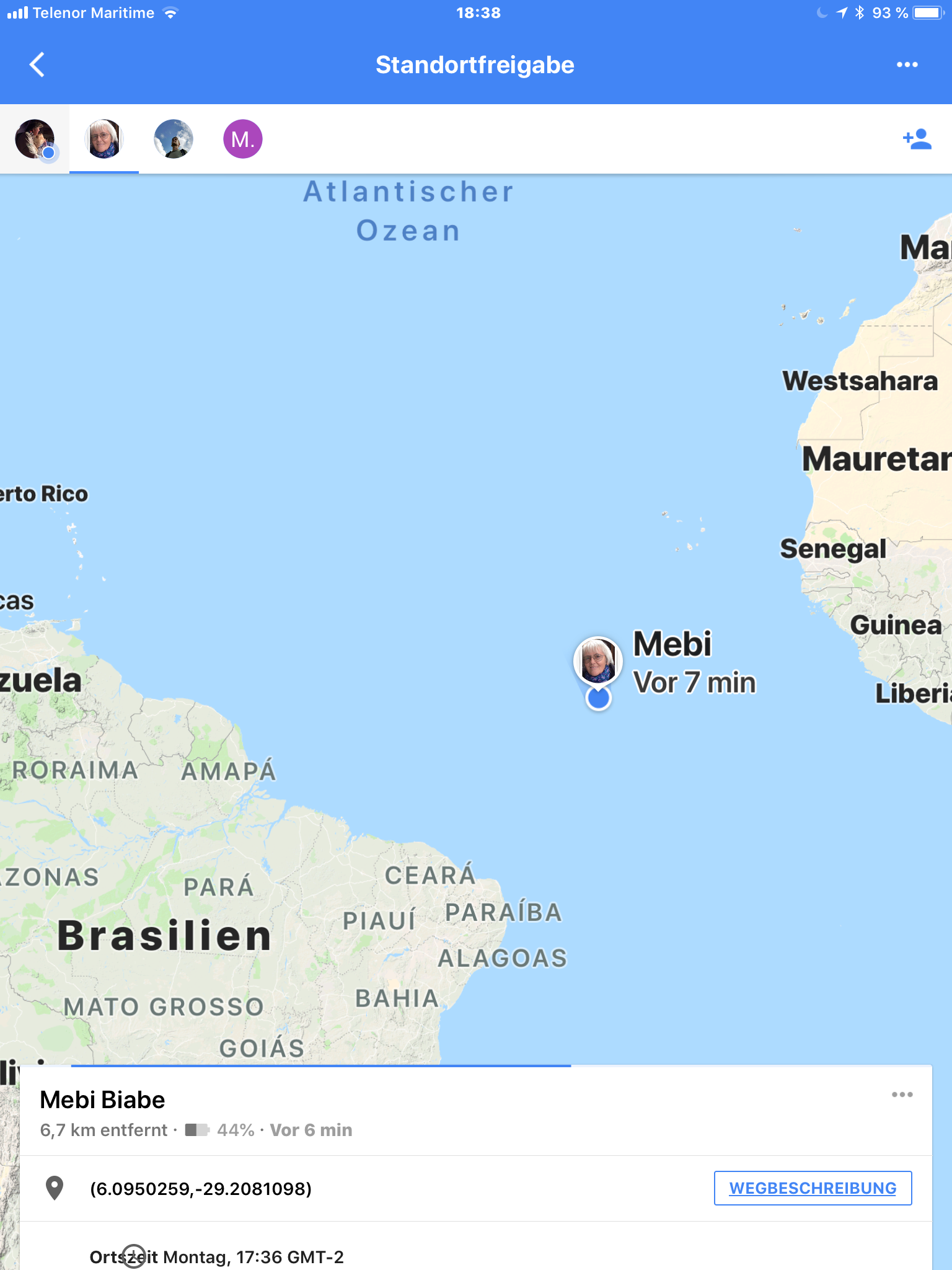Es sind ab heute Morgen 3.721 km bis Salvador.