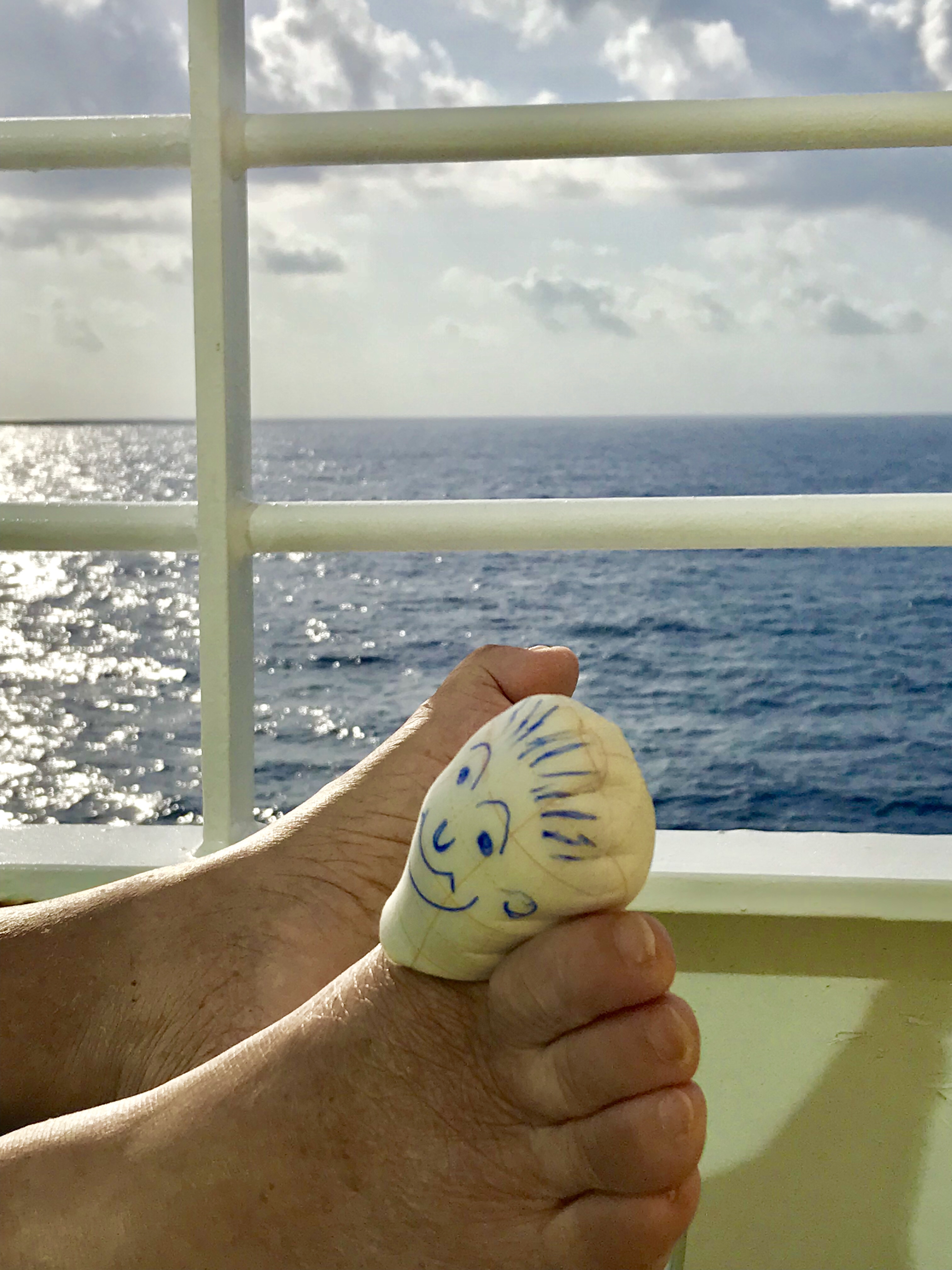 Marie muss die ganze Zeit ihren angeschwollenen Zeh entlasten und hochlegen. Das bedeutet f sie, viel Durchhaltevermögen u leider kann sie so gut wie garnichts selbst unternehmen. Aber das Gute an der Kabine ist, dass wir uns f Balkon entschieden hatten. Das kommt ihr jetzt sehr zu Gute.
